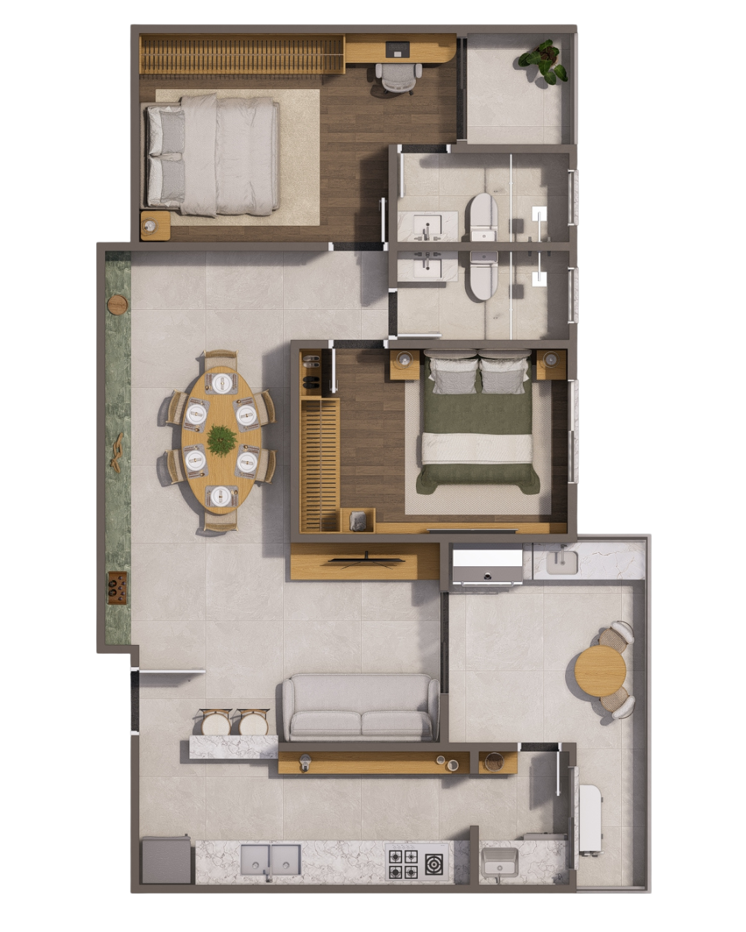 Esse tipo de apresentação traduz o projeto em uma linguagem visual intuitiva, garantindo que você e seus clientes falem a mesma língua. As plantas humanizadas entregam um nível de clareza que eliminam inseguranças, despertam desejo e tornam a jornada de compra mais envolvente!